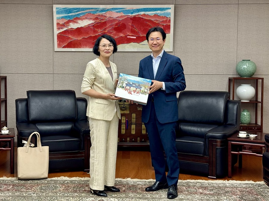 姜相旭总领事于5月6日(星期二)上午会见到访我馆的广东省肇庆市外事局局长邹小玲一行,并就韩肇两地合作方案等交换了意见。