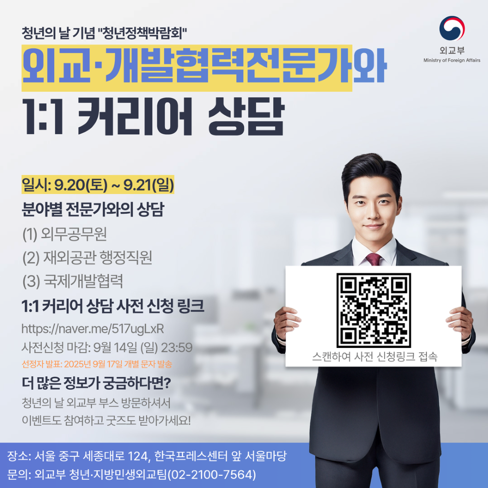 (청년의 날 기념 청년정책박람회)외교·개발협력전문가와 1:1 커리어상담 참여자 모집