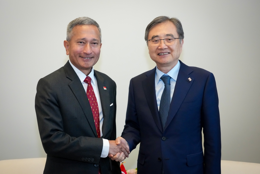 조 장관은 9.26.(금) 오후에는 「비비안 발라크리쉬난(Vivian Balakrishnan)」 싱가포르 외교장관과 만나 양국 관계 및 한반도 문제를 포함한 지역·국제정세 등에 대해 의견을 교환하였습니다.